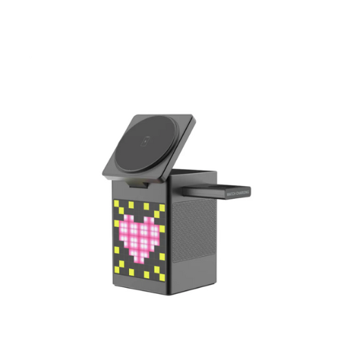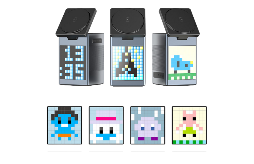 Điểm nhấn độc đáo của sản phẩm chính là màn hình hiển thị pixel hoạt hình, được trang bị 110 đèn RGB. Người dùng có thể tùy chỉnh hình ảnh pixel theo sở thích, biến trạm sạc thành một món phụ kiện vừa hữu ích vừa mang đậm dấu ấn cá nhân.